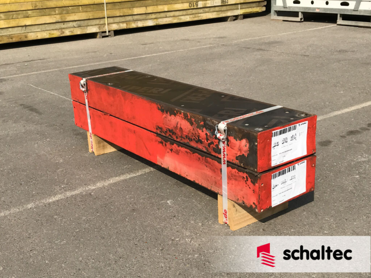 Dieses Element ist ein Außenteil zur wirtschaftlichen Stirnabschalung. Eine komplette Abschalung besteht aus 2 Außenteilen und einem Mittelteil.